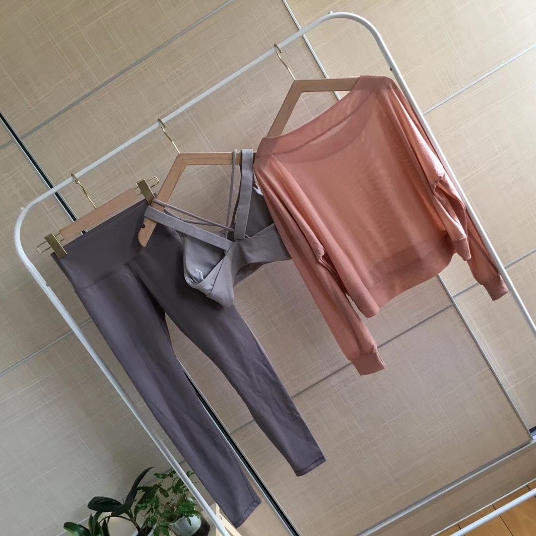 Orange-red sports three-piece suit quick-drying breathable soft mesh long-sleeved yoga clothes running and dancing fitness suit women