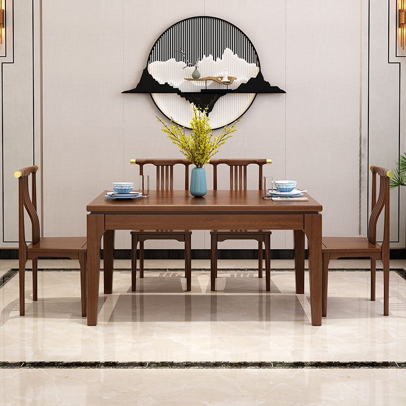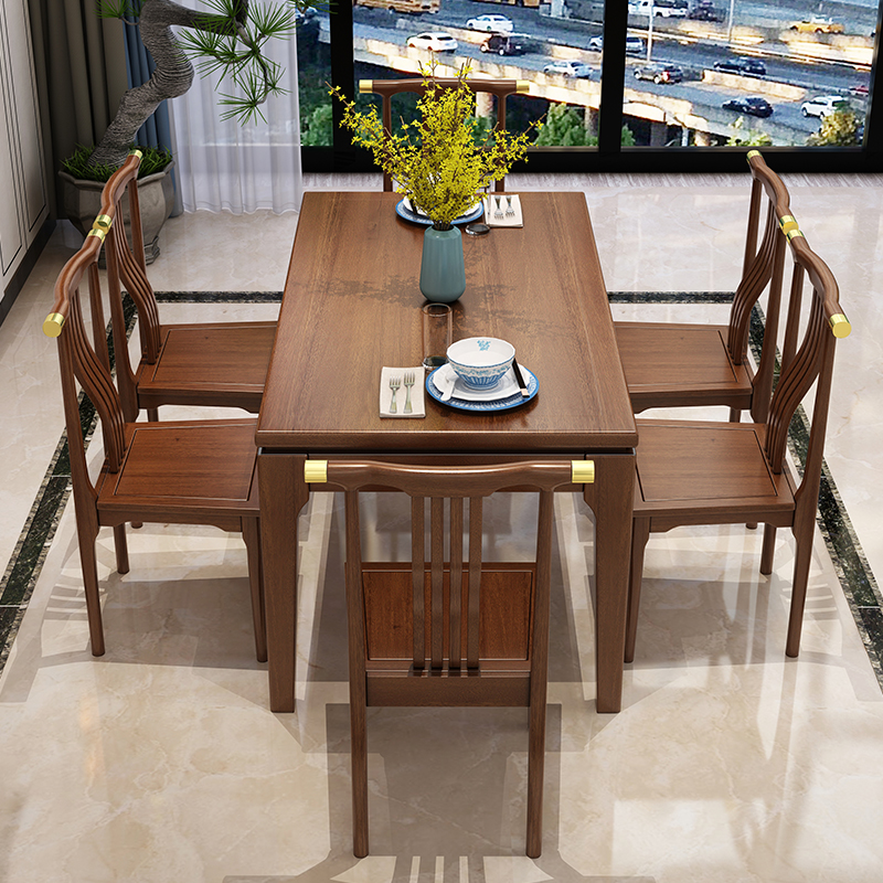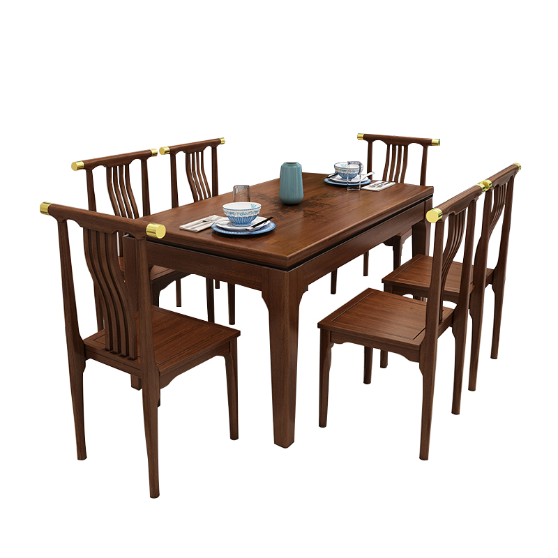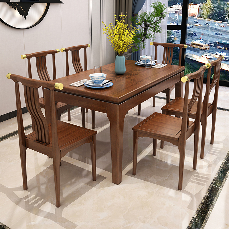 New Chinese solid wood table gold silk sandalwood light extravagant dining table small family type rectangular red wood 6 people dining table and chairs combination