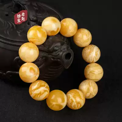 Russian natural amber Chanterelle yellow Beeswax white flower bone china white Beeswax pendant cake Pingan buckle Lao Zhao live