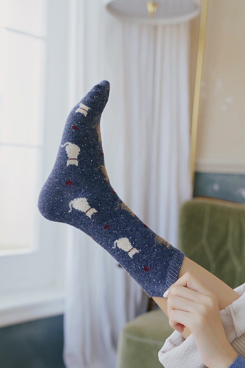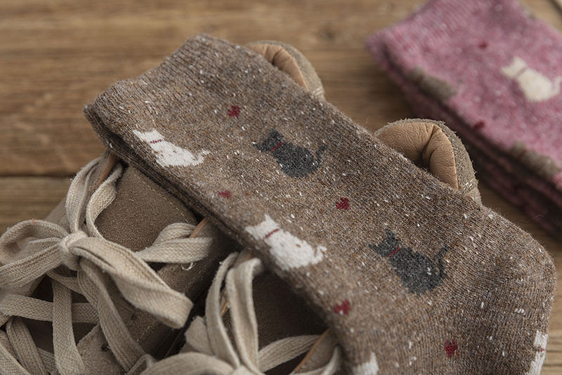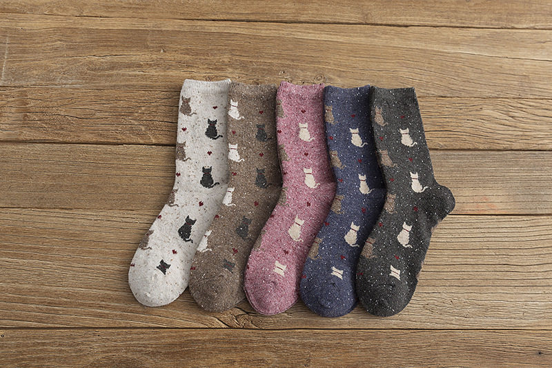 Buy five pairs of warm pip yarn cartoon cat mid tube socks bubble socks women socks wool socks ins net red socks