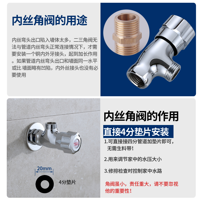 Internal wire triangular valve 4 for domestic tap water pipe switch water heater hot and cold internal and external wire straight valve water-stop valve