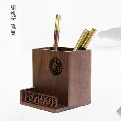 Wooden multifunctional pen holder log Chinese style student pen barrel solid wood desktop storage box business gift customization