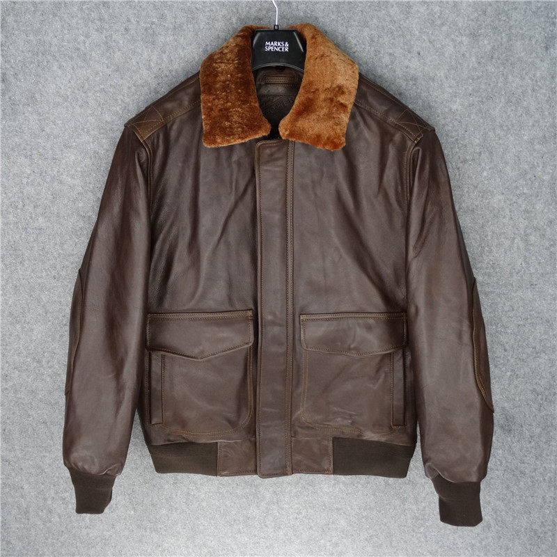 Air Force Flying Clothing Jacket Goat Leather Fur Dressing Dressing Men Can Remove Lamb Collage