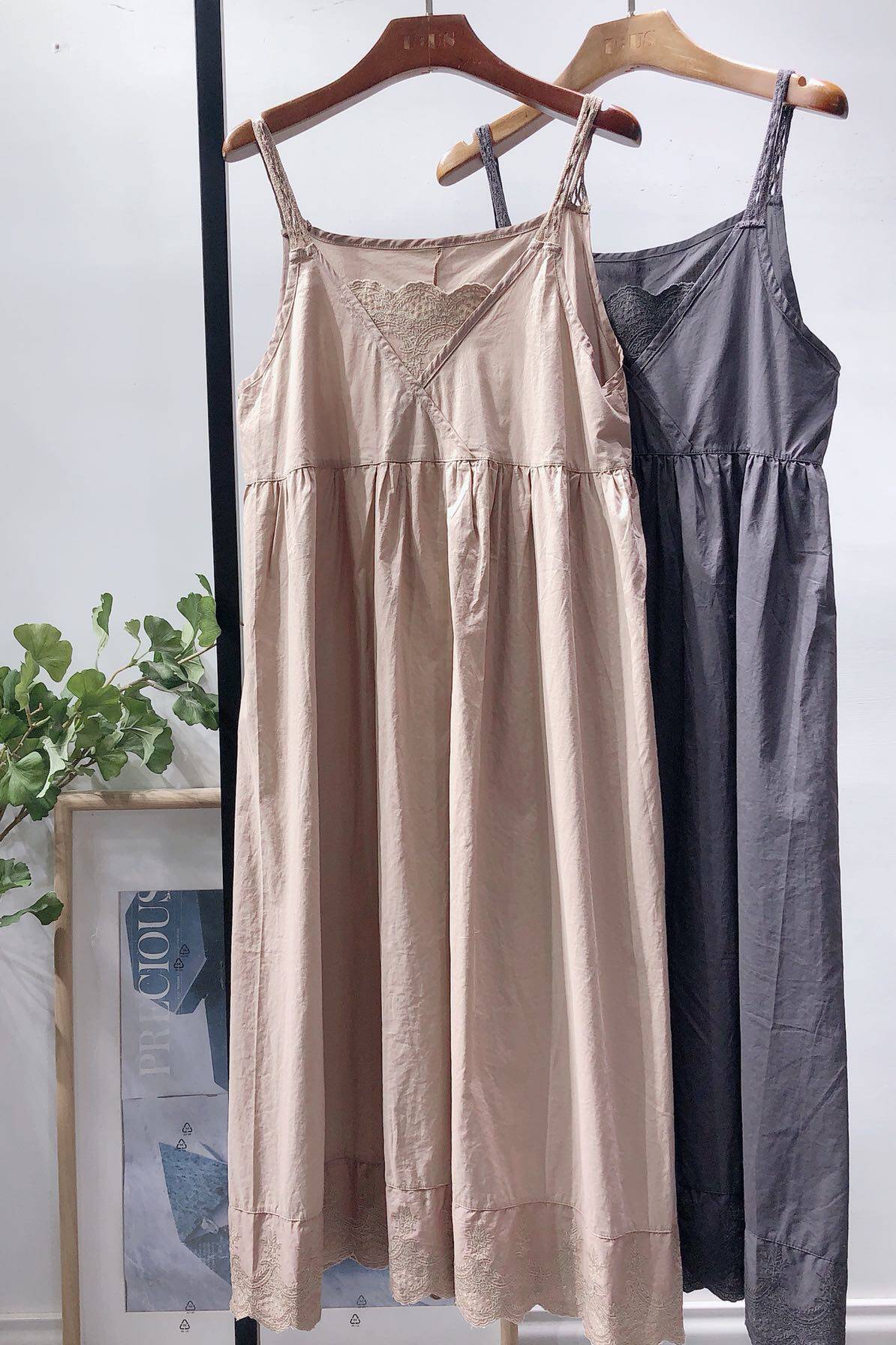 2023 Spring dress new bottom hanging skirt loose and large lace lace embroidered flower cotton cotton dress woman