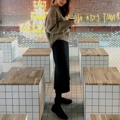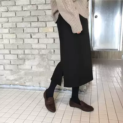 2021 autumn and winter new side open cross Roman cloth skirt straight skirt high waist black versatile one step dress women size