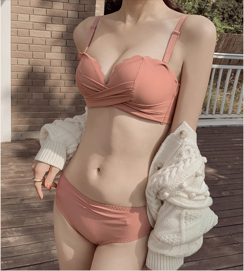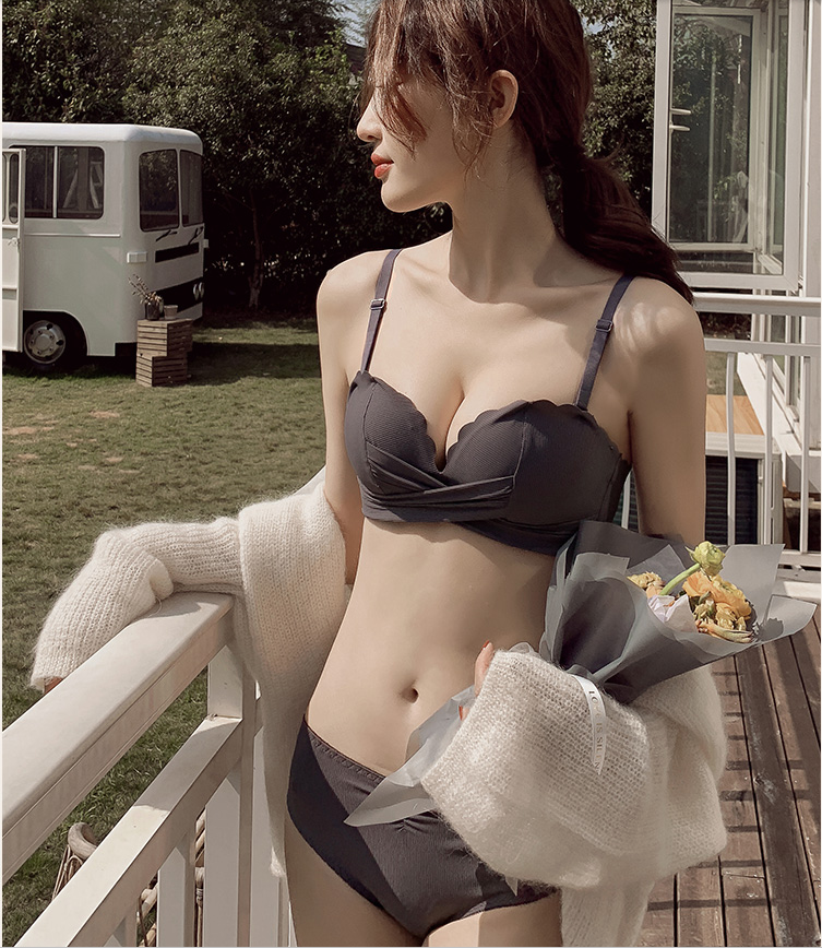 Japanese underwear women without steel ring gather small chest face clouds clothes clothes adjusted bra set
