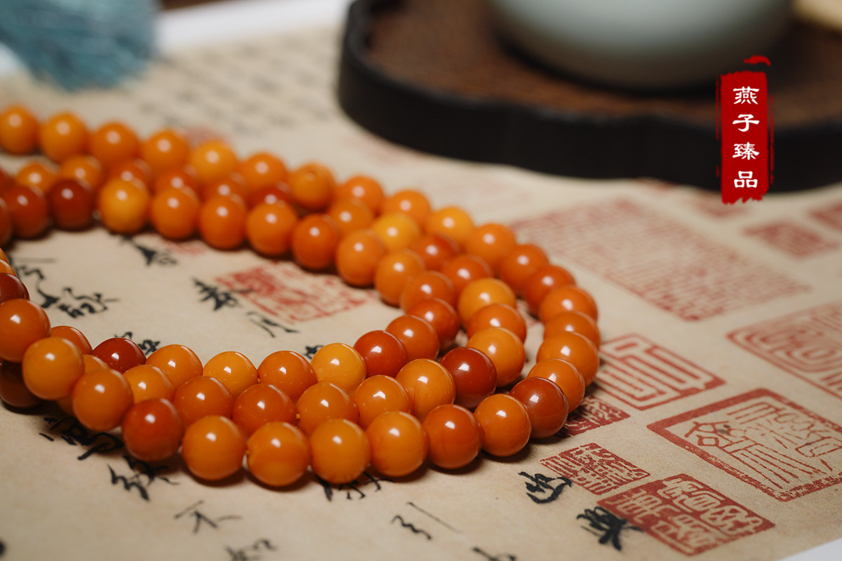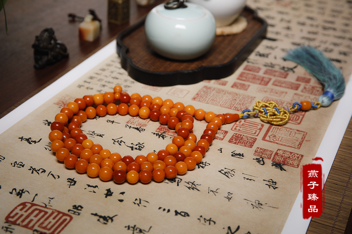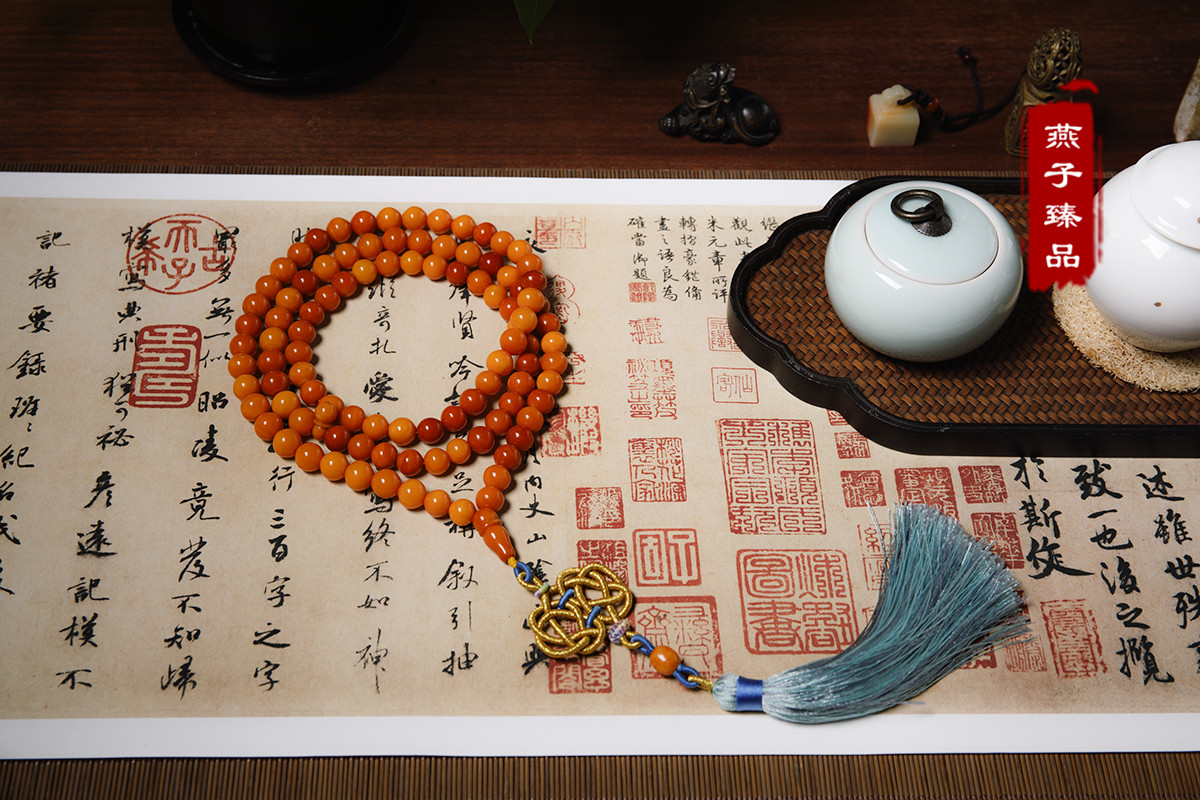 (Swallow best) natural old beeswax 108 Buddha bead rosary beads old beeswax heirloom collection tower chain necklace