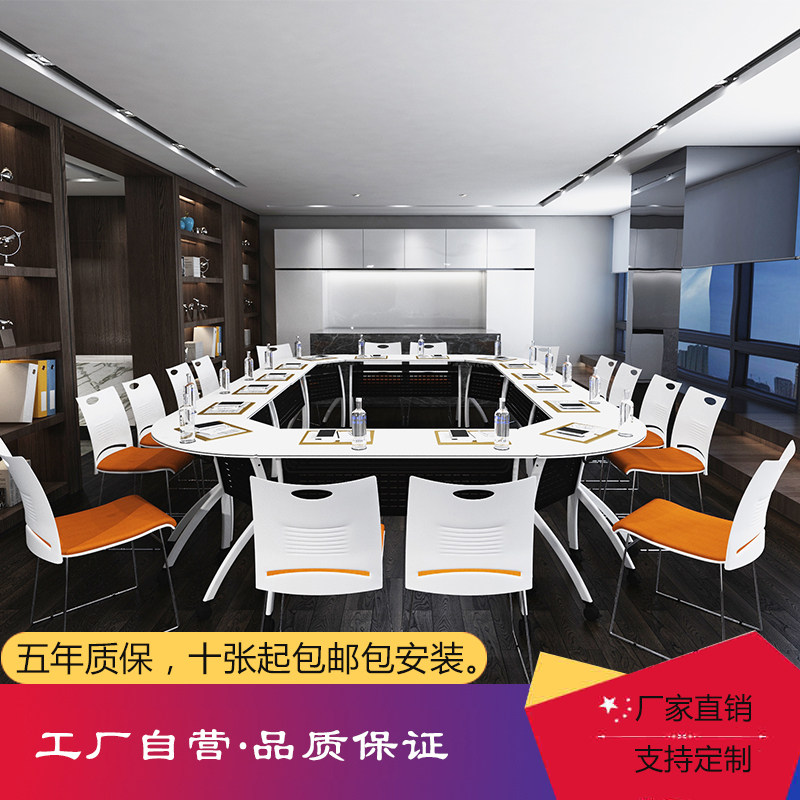 Folding conference training table and chair combination training table conference table long table multifunctional splicing mobile oval long table