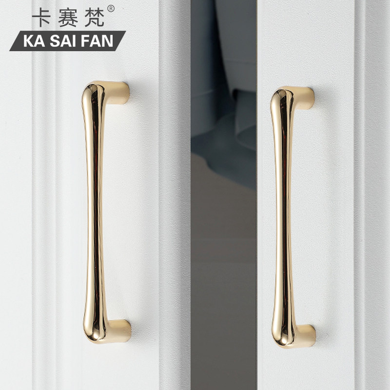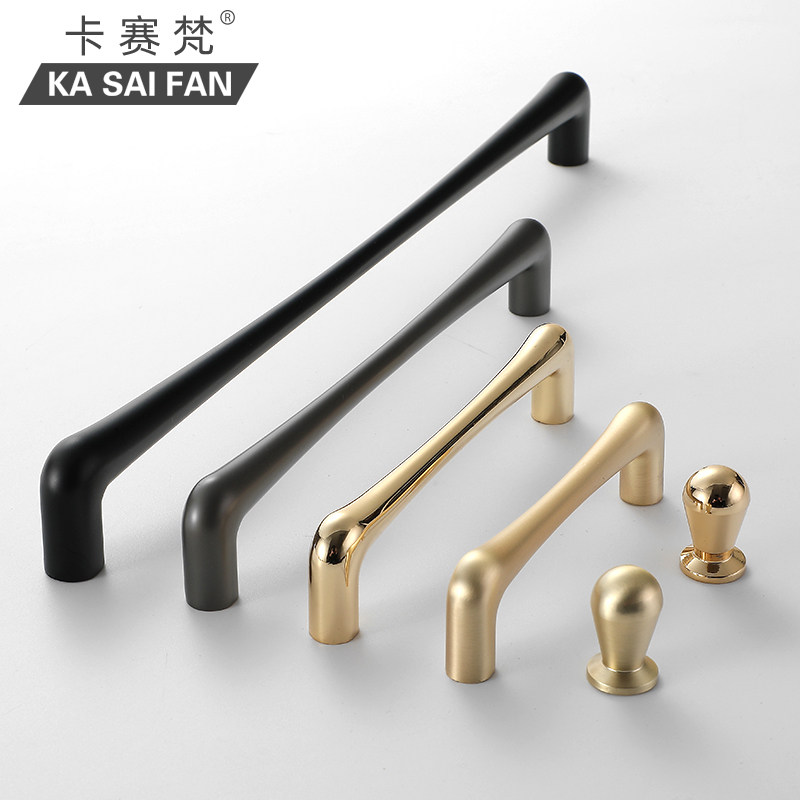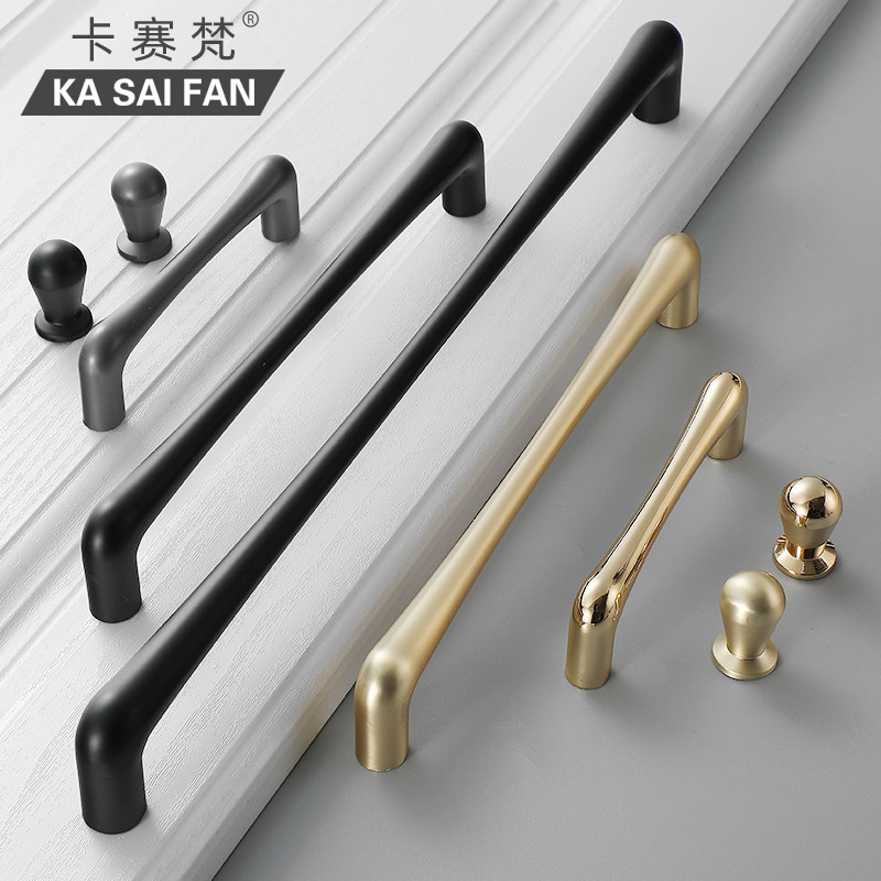 Zinc alloy modern minimalist cabinet door handle simple European black wardrobe handle drawer whole cabinet bright gold kitchen handle