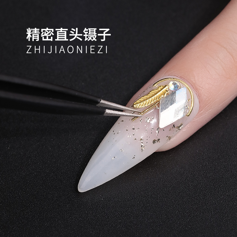 Princess Beauty Nail Tweezers Straight Head Elbow Insert Drill Nail nail sticker nail applier with applie with water drill small ornament tool-Taobao