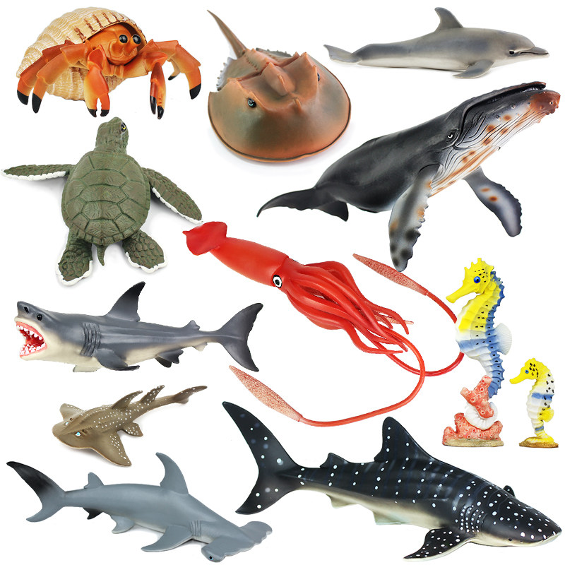 Killer Whale Humpback Whale King squid Octopus Gray Whale Great White Shark Dolphin Blue Whale Hermit crab Horseshoe crab Beluga Whale Manta Ray Seahorse Hammerhead Shark Crab Plowhead Ray Swordfish fly