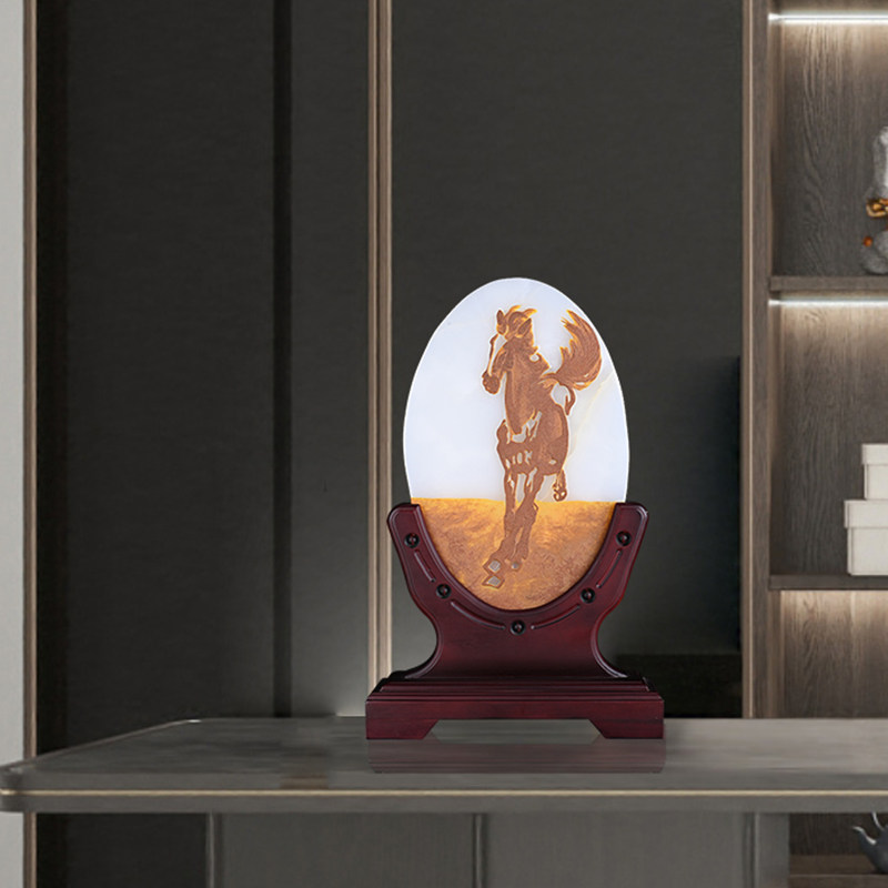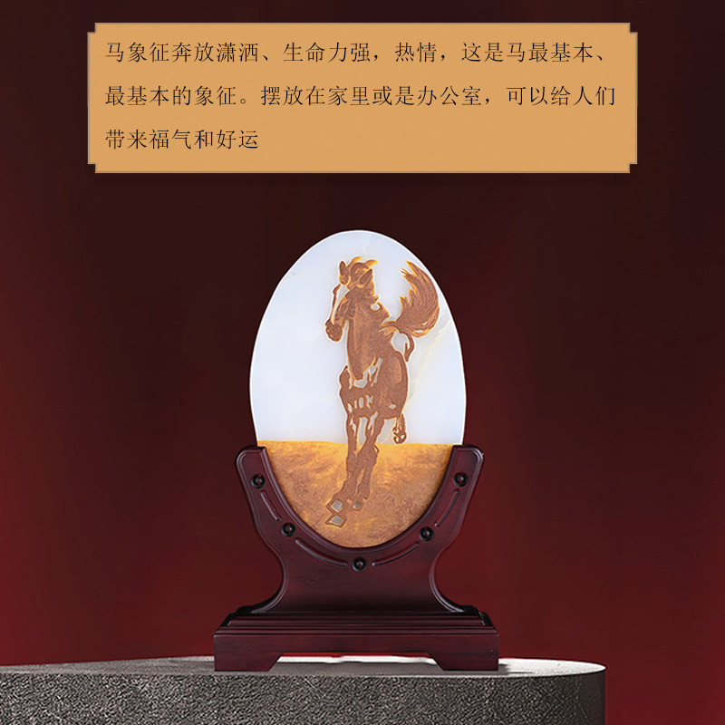 Jade oxide skin shadow carving living room tea house office decoration jade carving art horse to success sand painting ornaments