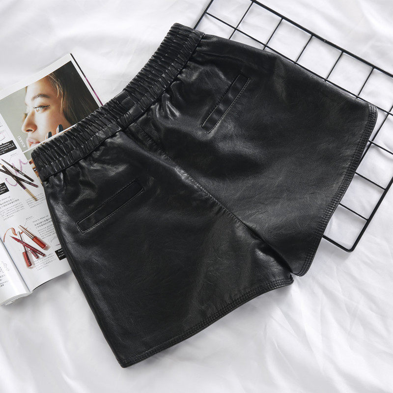 Heavy skin shorts female autumn winter new 2020 thin black A - word outer wear broad legs loose high waist PU boots