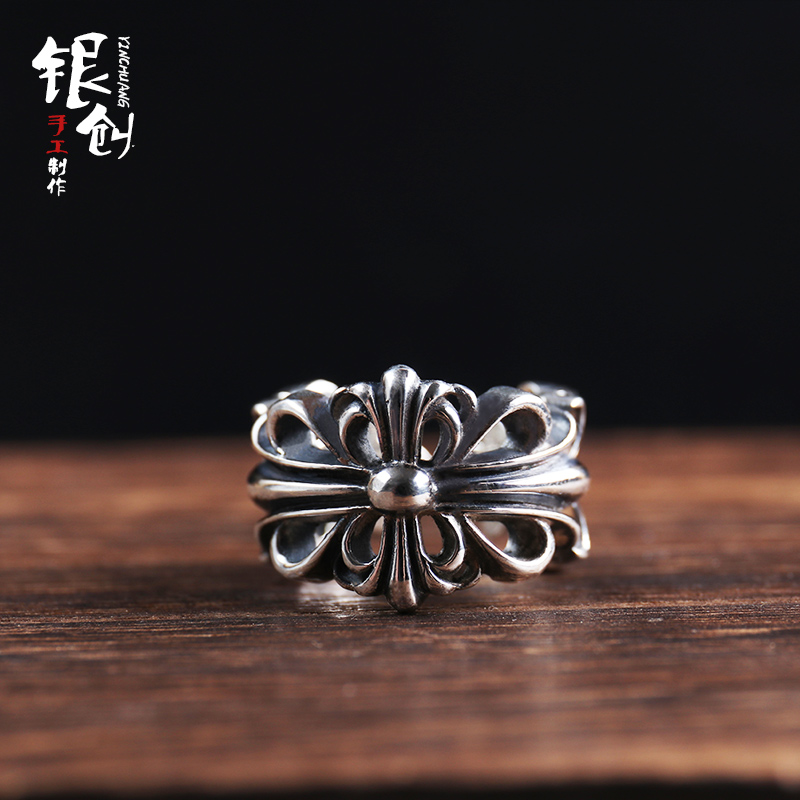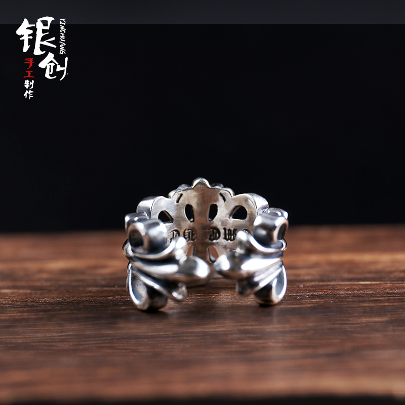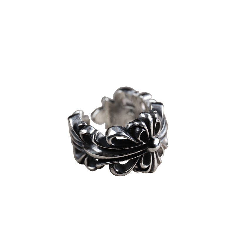 Silver Genesis Takahashi Wulang CH Cross flower opening ring 925 pure silver punk male wave personality Zhu Yulong men and women's heart