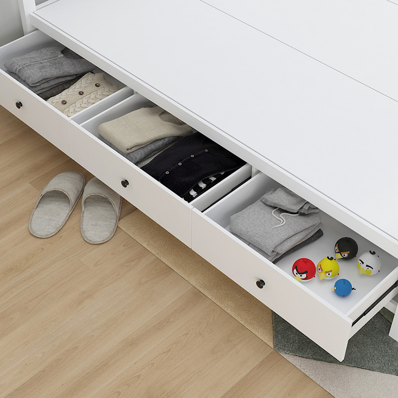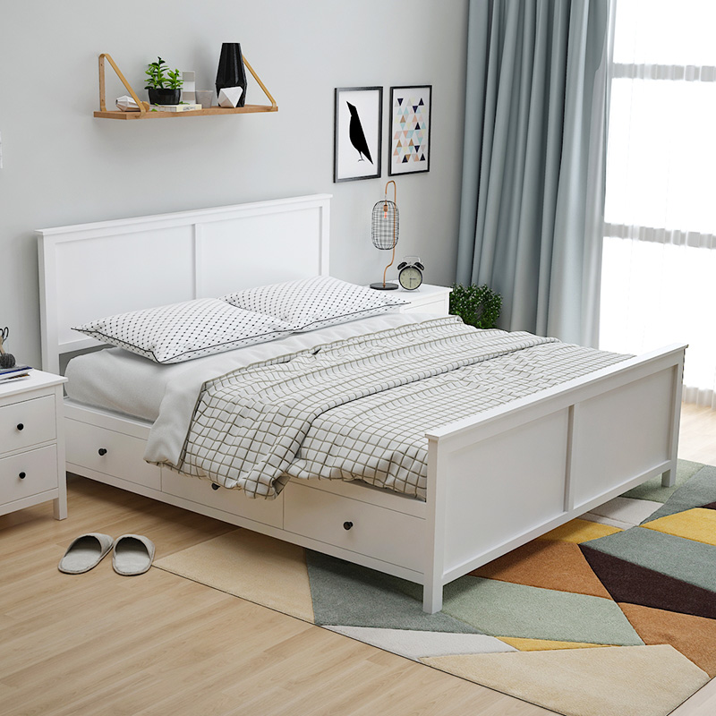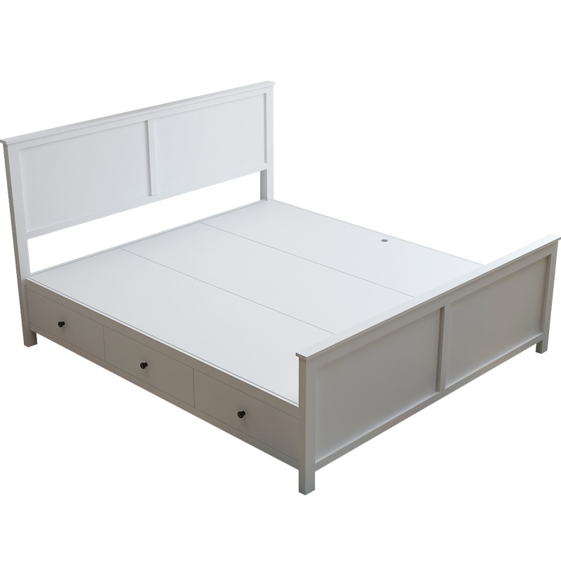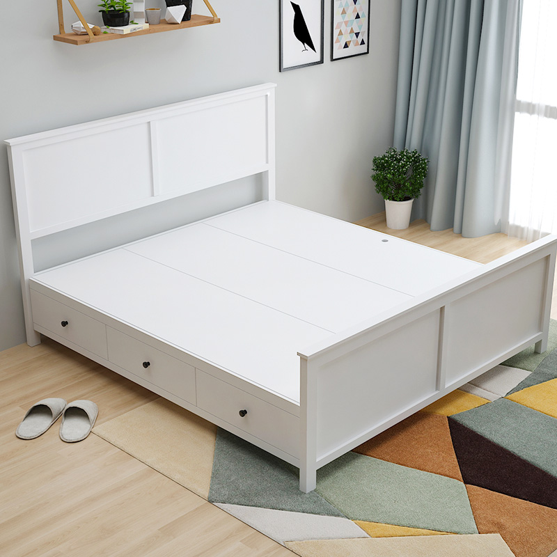 Full-solid wood custom Nordic double bed minimal modern storage high-box bed with drawer white American wedding bed