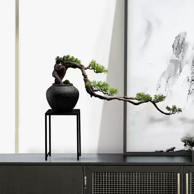 Chinese simulation welcome pine tree indoor fake plant hotel living room clubhouse model room creative green plant decoration bonsai