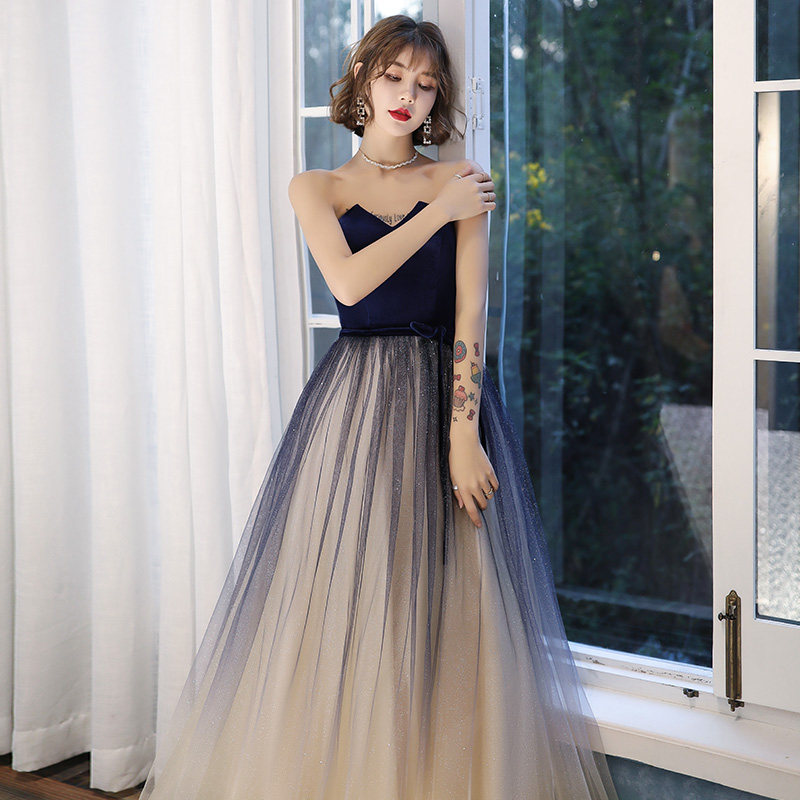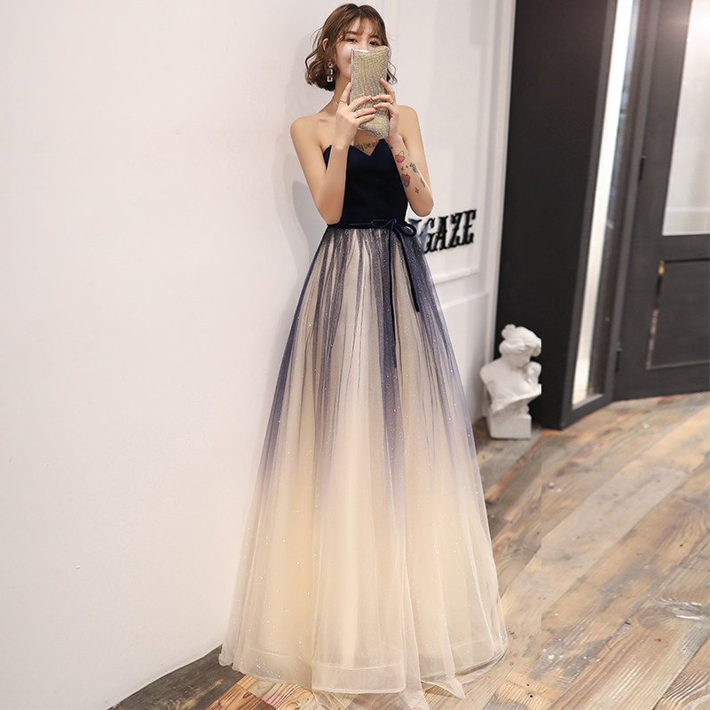 Banquet Evening Dress Dress Lady 2022 New Temperament Gradual Stars Blue High-end Light Lavish Host Advanced Texture