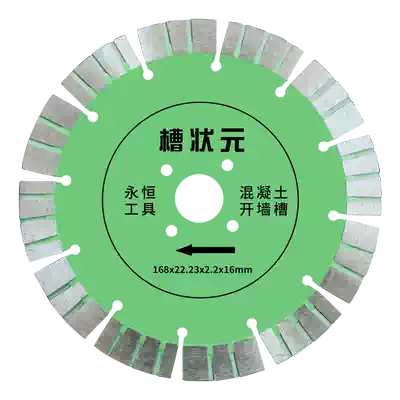 Groove champion 168 concrete cutting piece 190 wall opening groove with water and durable wet cutting saw blade 210 slotting cutting blade