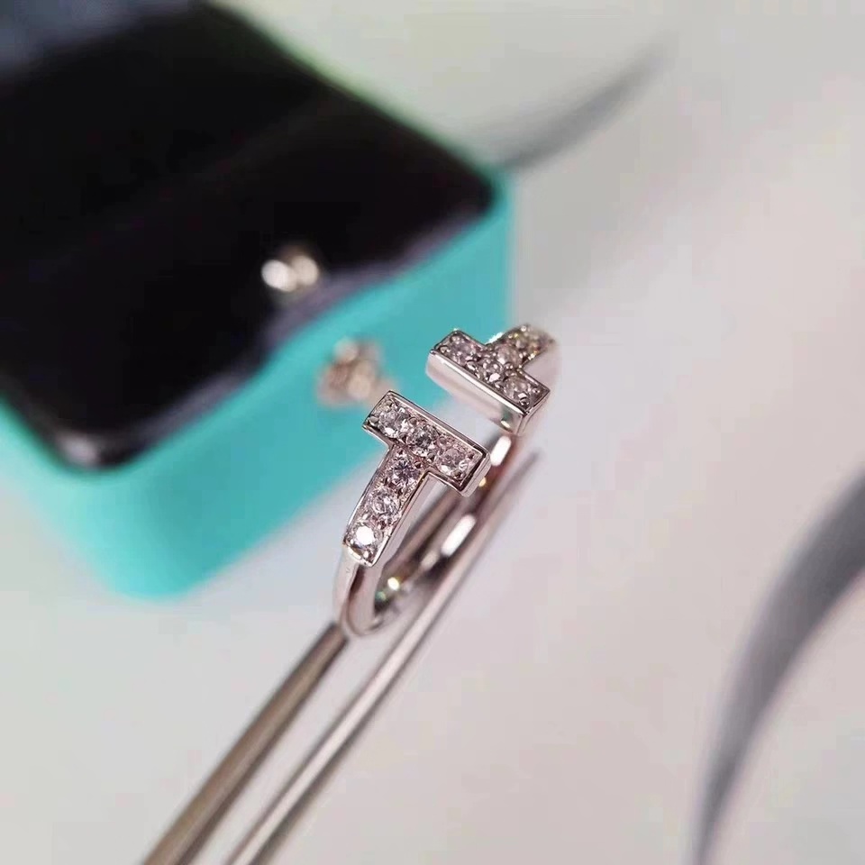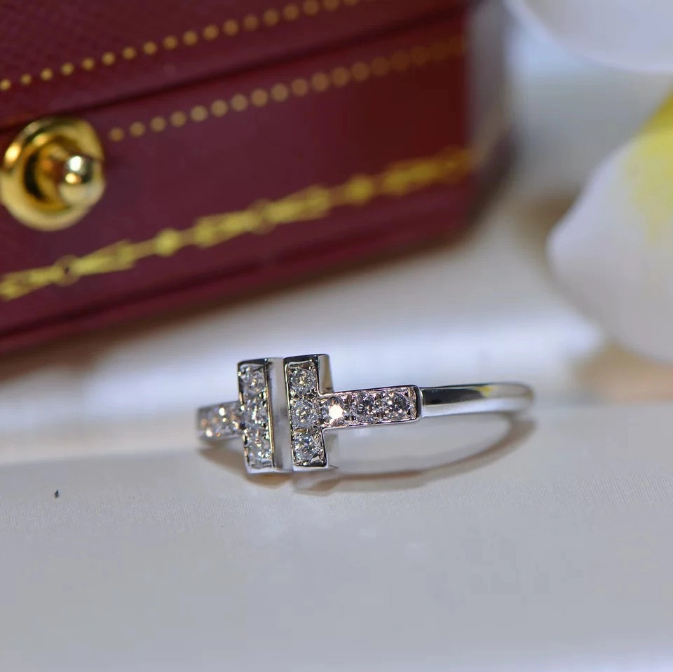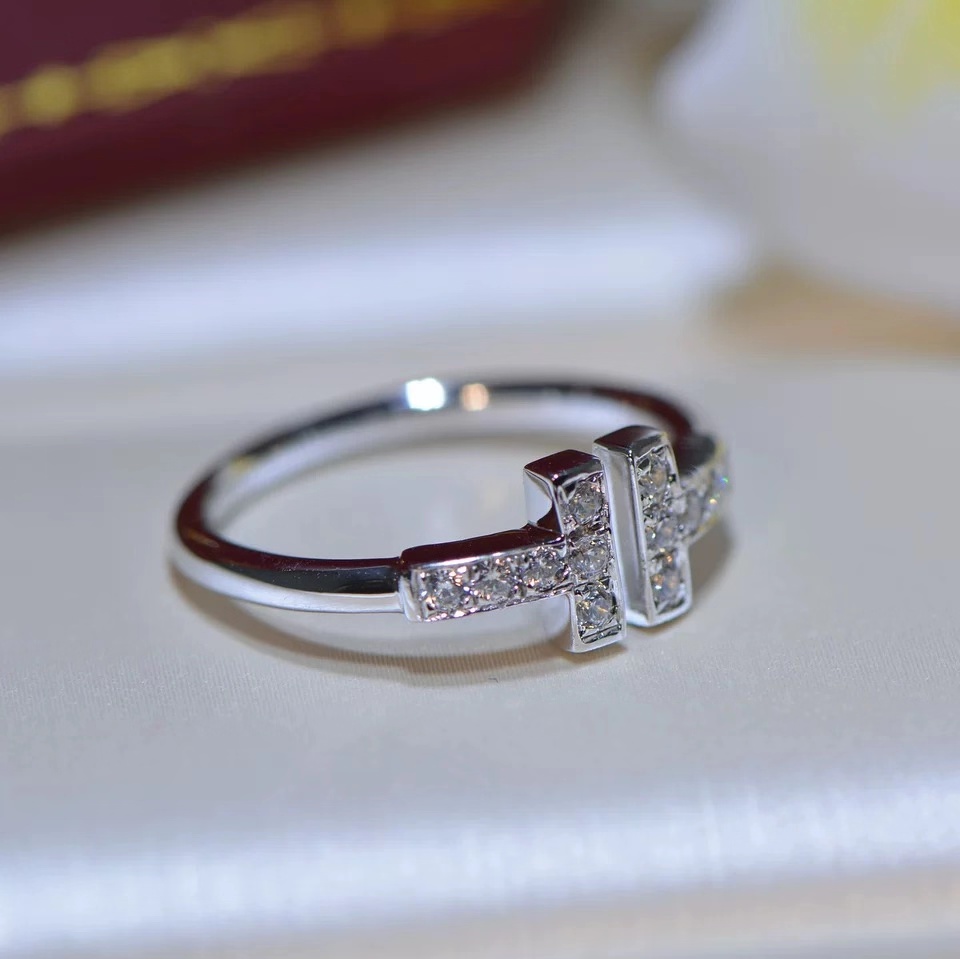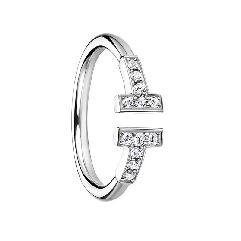 PT950 white gold inlaid imported Moissanite double T open ring H letter simulation diamond female tail ring couple ring
