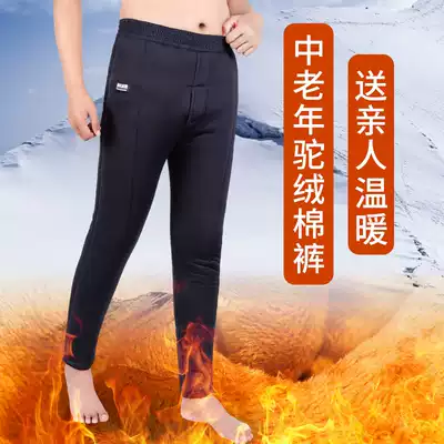 Winter camel wool old man cotton pants men plus velvet thickened middle-aged elderly father fat warm pants men wear high waist