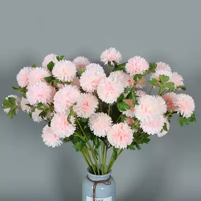Simulation flower 3 Fork Big head thorn ball chrysanthemum Green Flower Wedding Silk Flower Road lead flower arrangement small hydrangea ping pong chrysanthemum
