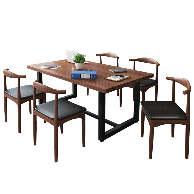 Industrial style desk LOFT solid wood negotiation table and chair combination Nordic rectangular small conference table long table 6 people
