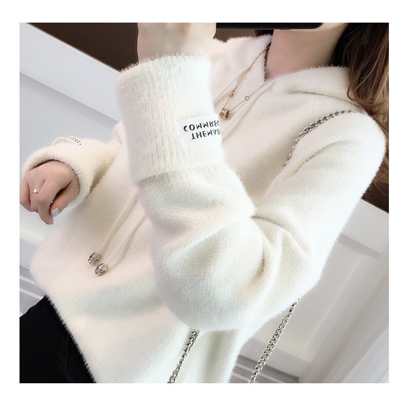 South Korea 2022 autumn and winter new loose pullover sweater women's mink fleece hooded sweatshirt slimming all-match top coat