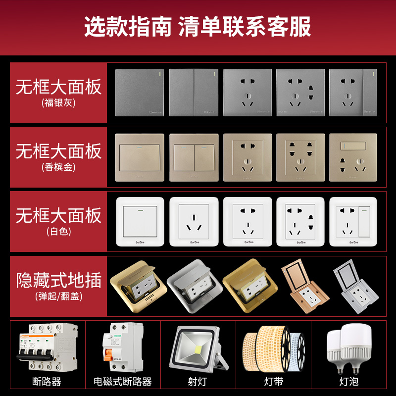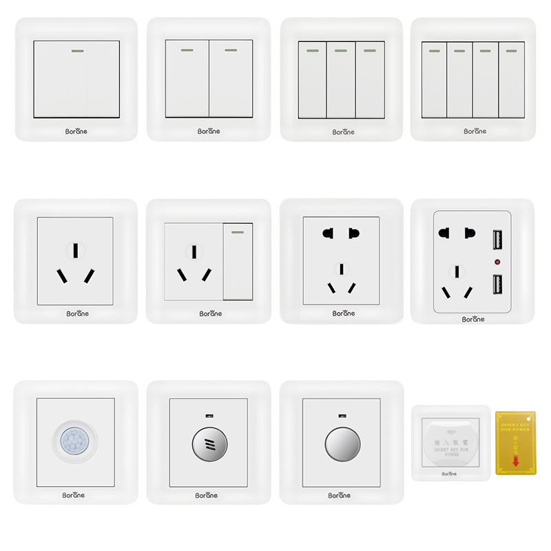 Five-hole socket One switch two switches three switches Four switches One double cut two double cut three double cut Four double cut One five-hole 10A three-plug 16A three-plug 16A three-plug 16A three-plug 16A three-plug 16A three-plug 16A three-plug 16A three-plug 16A three-plug 16A three-plug