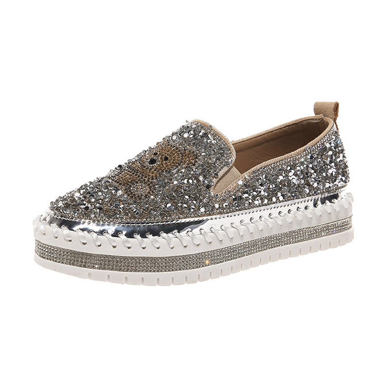 Tide Card Fashion New Flat Bottom Single Shoes Women 100 Hitch Water Drill Bright Sheet One Foot foot Rice Cake Thick Bottom Lefu Shoes Children Tide
