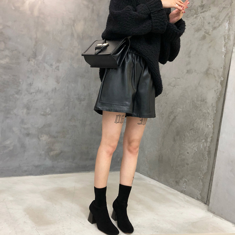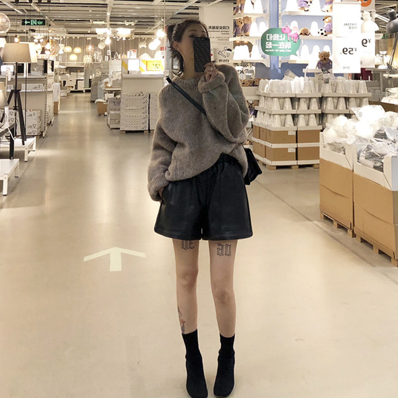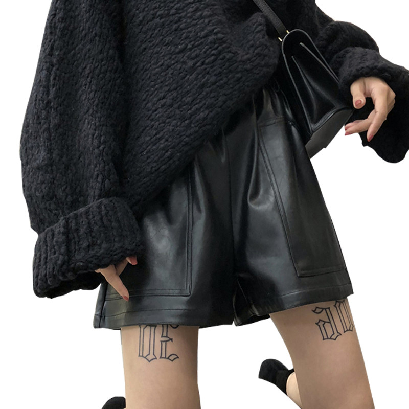 Pregnant women's pants spring and autumn new Korean version loose leather shorts PU leather pants all-match soft casual pants autumn and winter outer wear tide