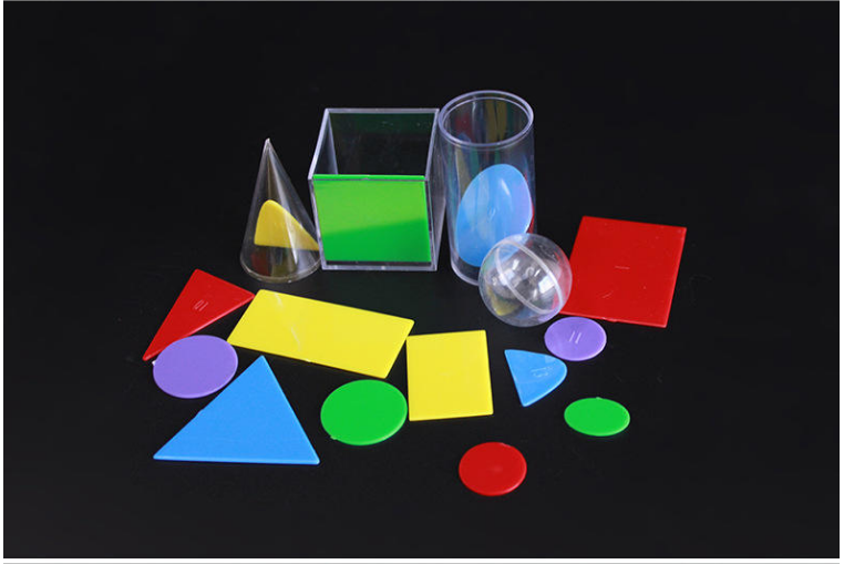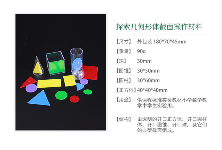 Primary school mathematics Exploration of geometry cross-section manipulation of materials Open cube cylinder cone ball space concept