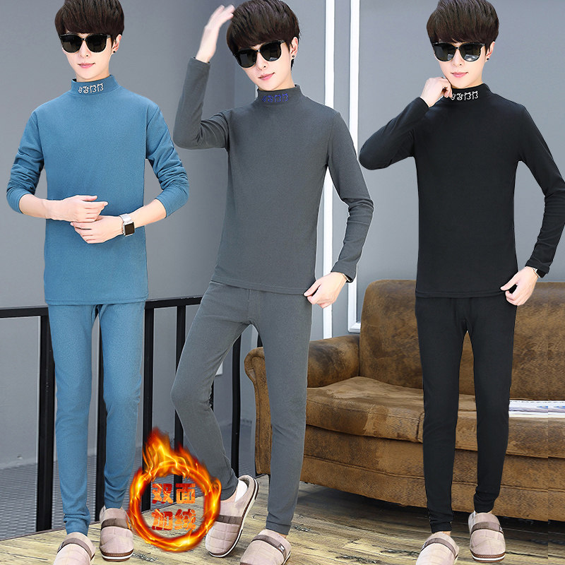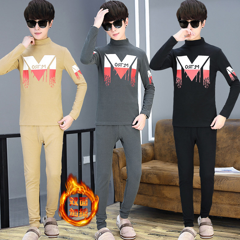 Teenage autumn clothes men wear fleece and thickened half turtleneck bottoming shirt suit junior high school students wear a set in winter
