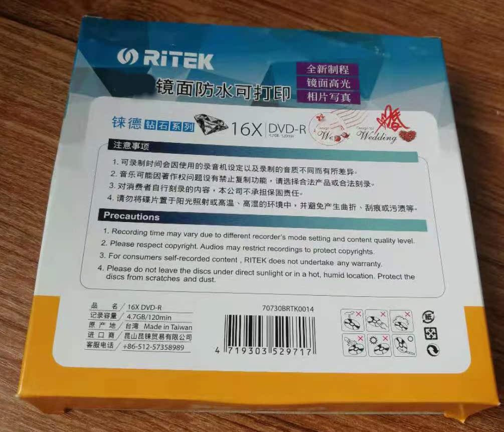 Rhenus Mirror Waterproof Printable DVD-R 16X blank burn disc CD recording disc 10 sheet casks