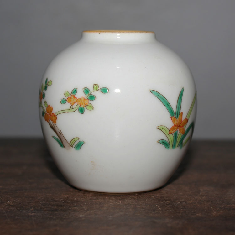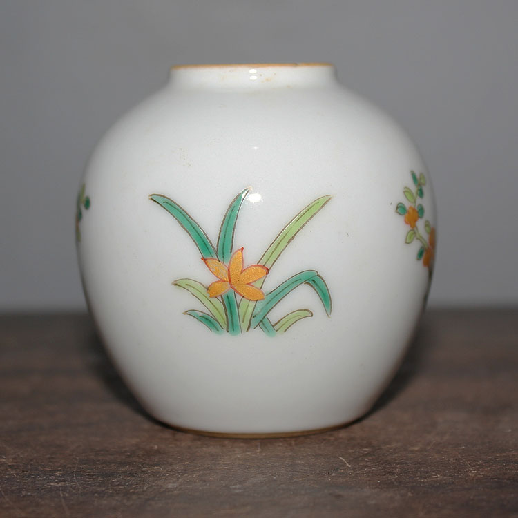 Guan Shi porcelain Xuan Qing famille rose flower small jar small overglaze color literary and writing utensils antique collection home
