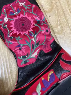 Cloud totem embroidered flower totem leather long tube women's boots winter thick soles boots