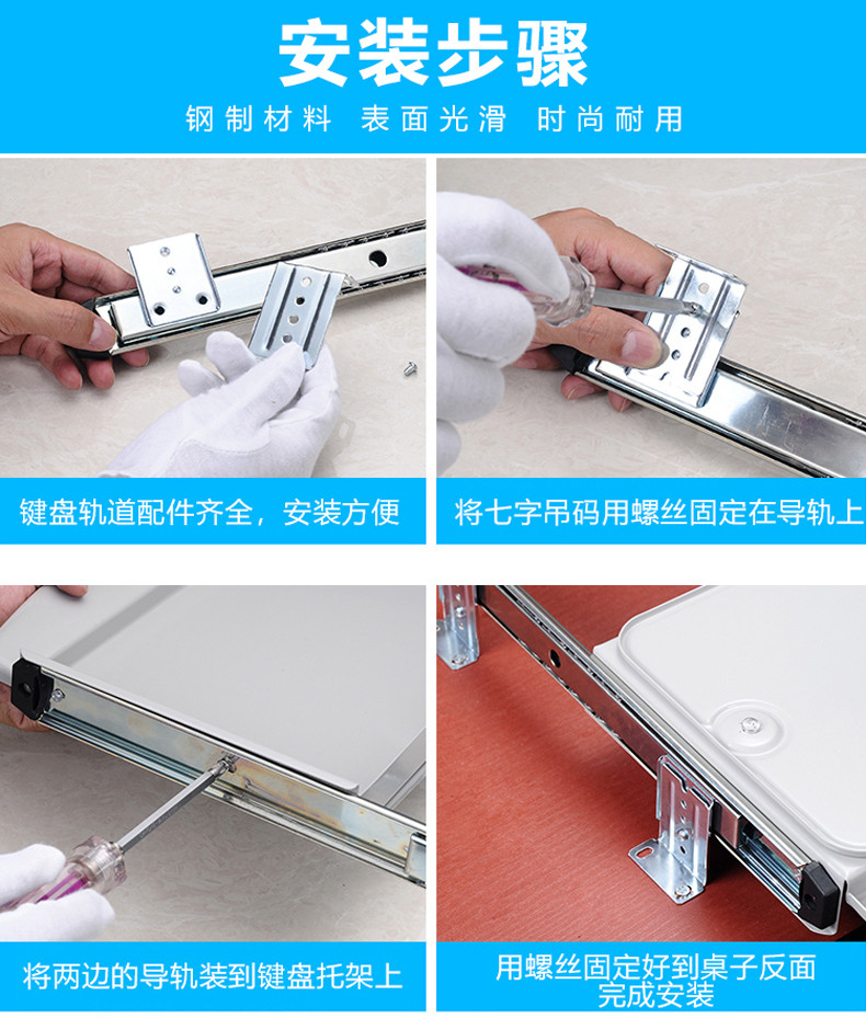 Desk computer keyboard holder Keyboard drawer two-section slide lifting keyboard holder bracket Guide rail accessories