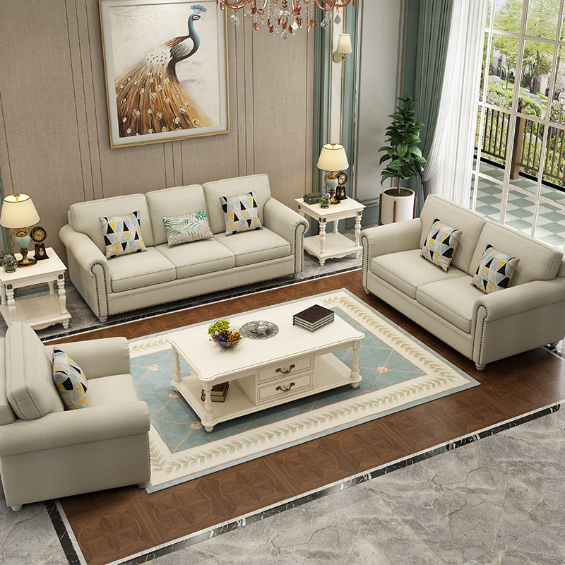 American sofa fabric sofa couch combination living room packaging modern minimal small household L type light luxury sofa