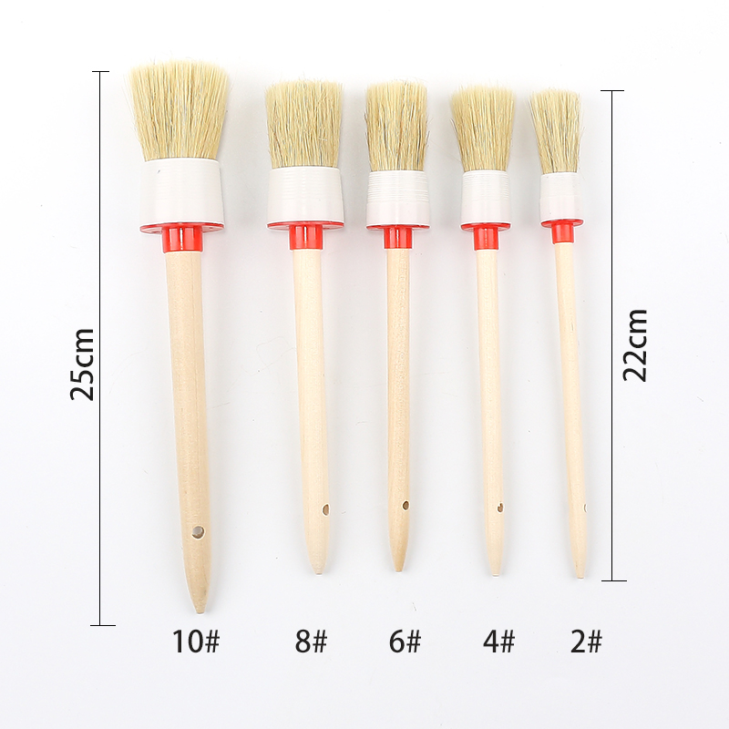 Car Details Wood Handle Beauty Cleaning Brush Pig Mane Hair Brush Air Outlet Hub Door Slit Brush 5 Pieces Cover