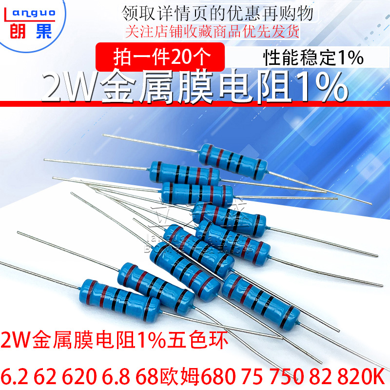 2W metal film resistance 1% Five color rings 6 2 62620 6 8 68 Ohm 680 680 82 82 820K