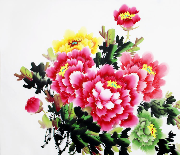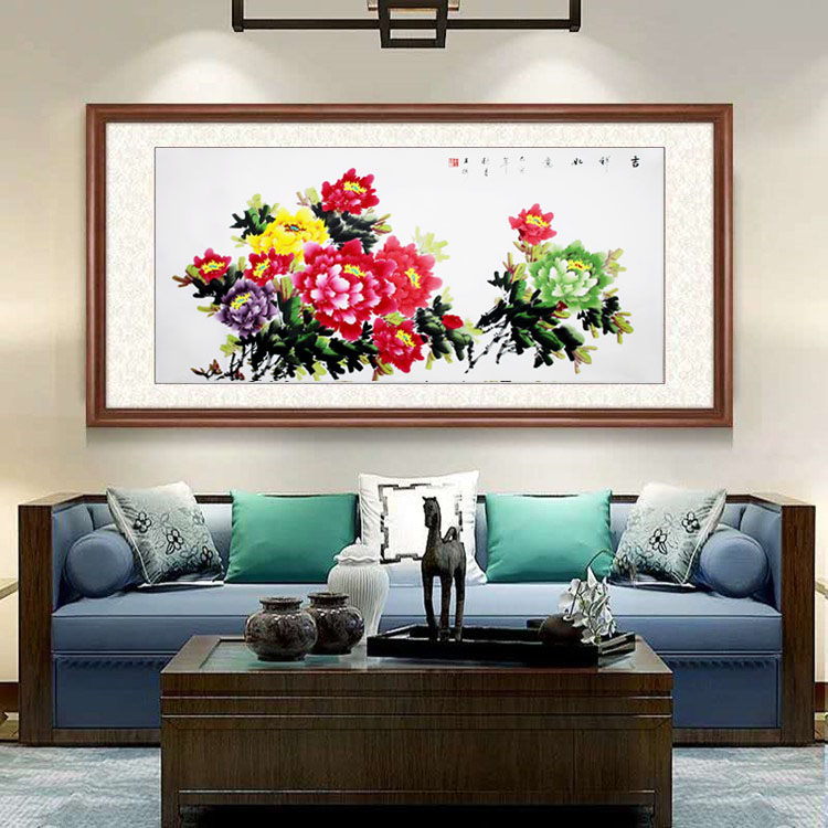 Peony Thu Wang embroidered bird character painting 4-feet banner with Chinese painting Calligraphy Art Painting of the Living Room Book Room Dining Room Dining Hall Decoration Hanging Painting