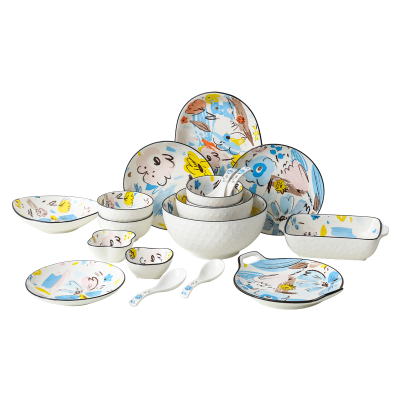 Doodle one-person food 丨 6-piece set Doodle two-person food 丨 10-piece set Doodle two-person food 丨 12-piece set with soup bowl spoon Doodle four-person food 丨 21-piece set Doodle four-person food 丨 23-piece recipe plate set