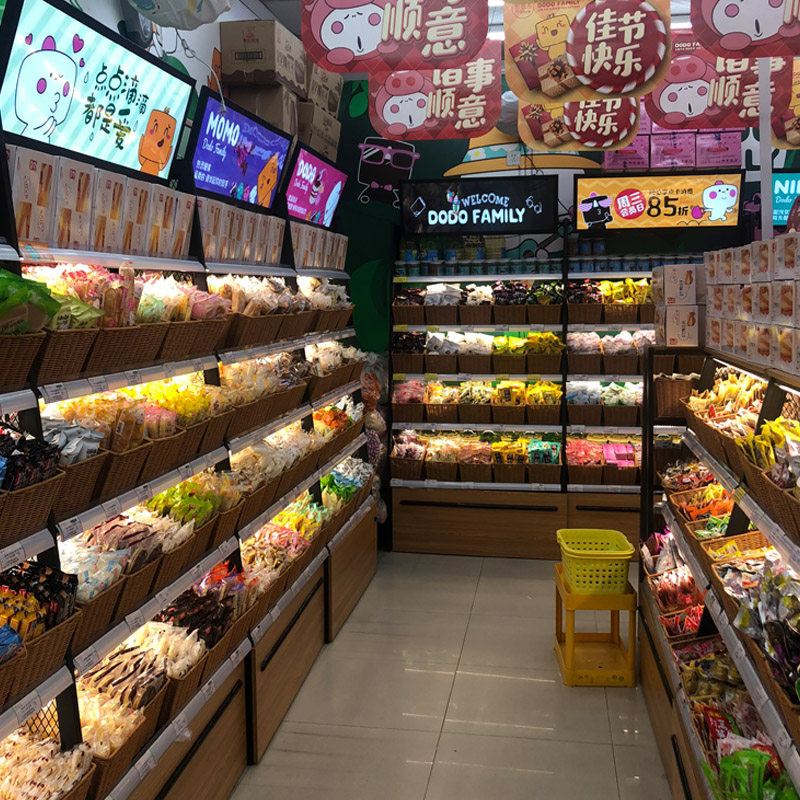 Snack shop shelf display stand convenience store supermarket bulk dried fruit bulk leisure snack display cabinet rattan frame