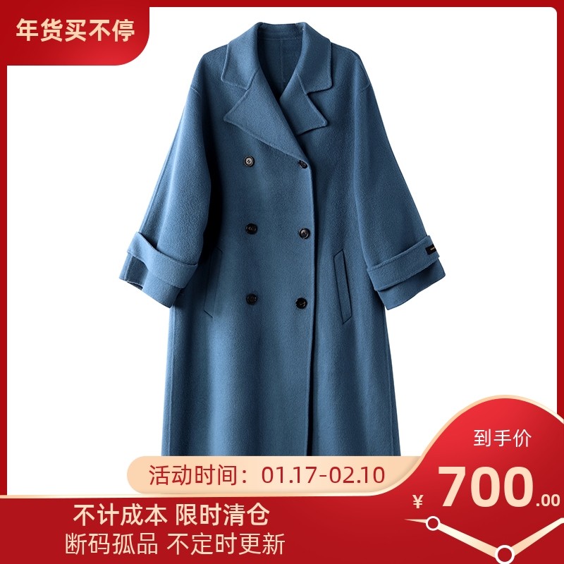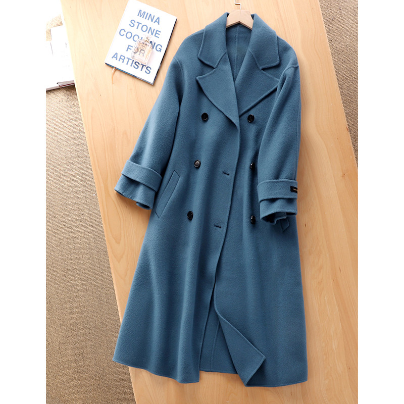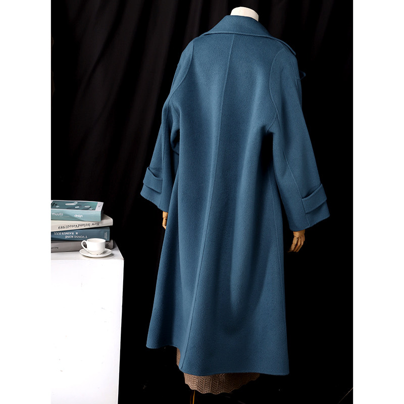 Self-contained temperament, full hand-stitched double-sided woolen women's suit collar, loose long double-breasted woolen coat 69396