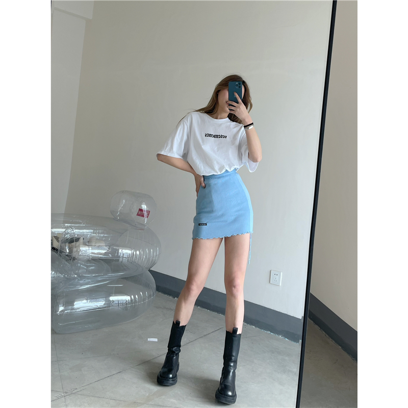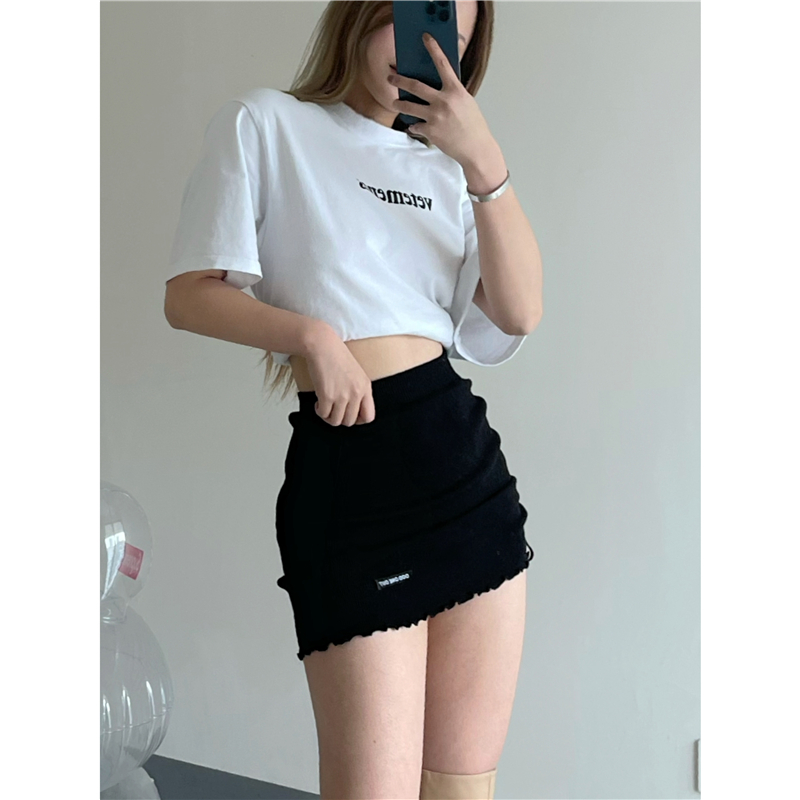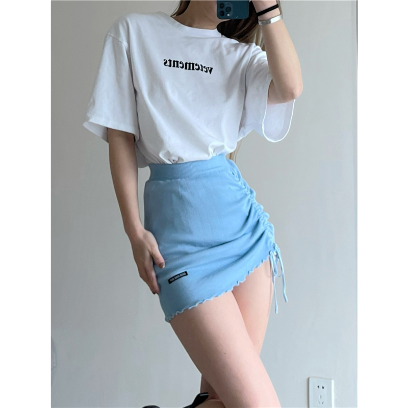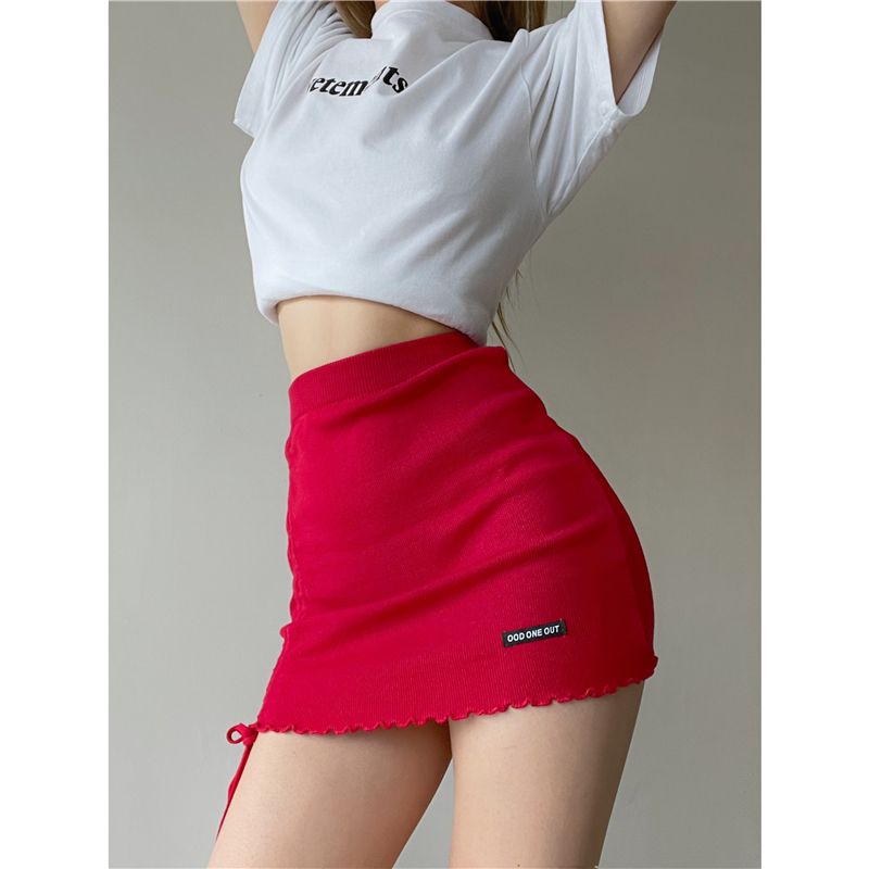 Pure and desirable spring and summer side drawstring pleated half-body knitted short skirt Women's high waist elastic hip skirt sexy