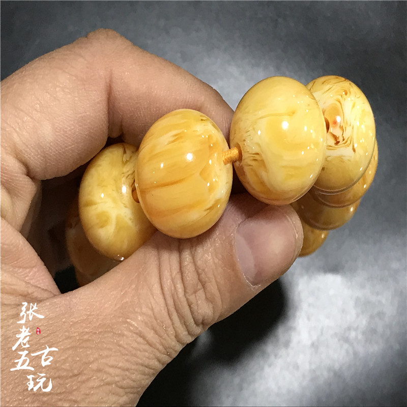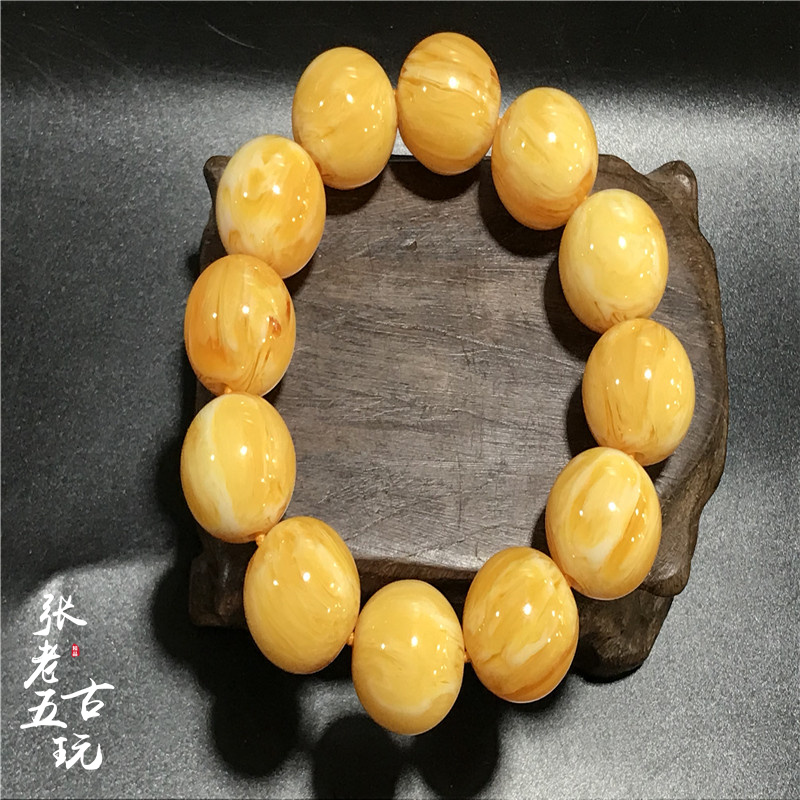 Antique antique beeswax amber round bead hand old beeswax raw stone round bead Lutong bracelet men's barrel bead jade