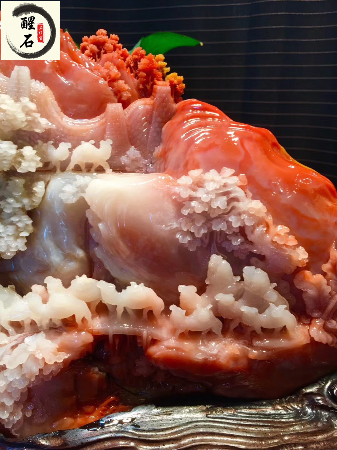 Laos Stone Stone seal Silk Road Landscape characters Stone carving Fine natural desktop Study Entrance Living Room Town house