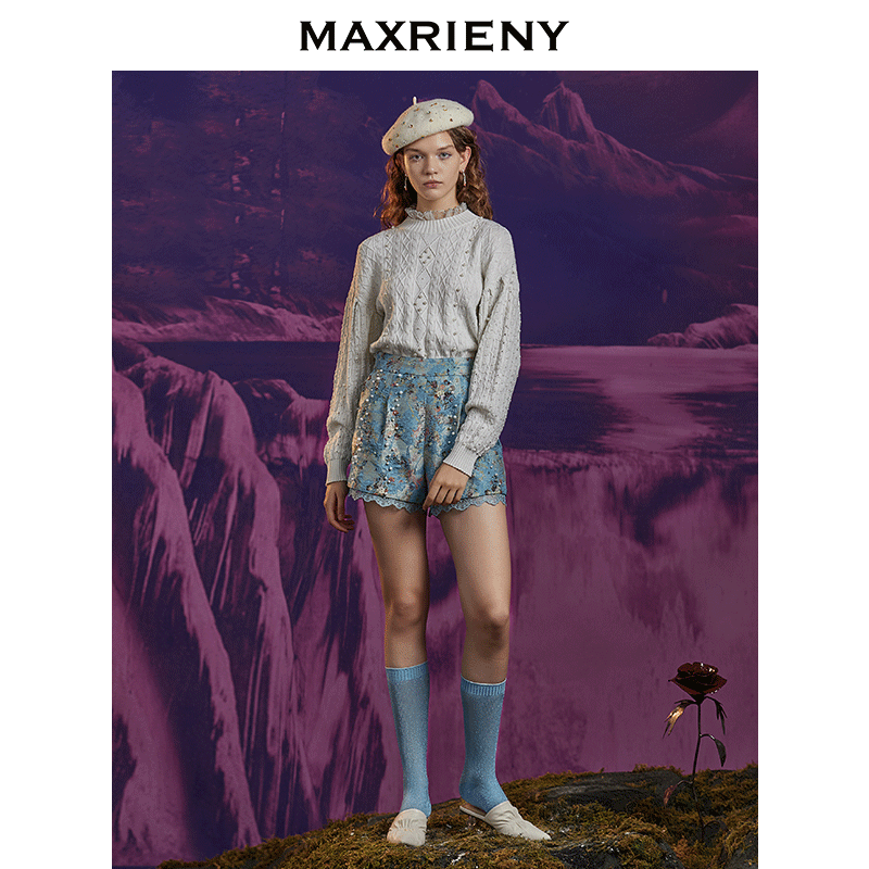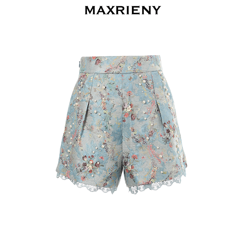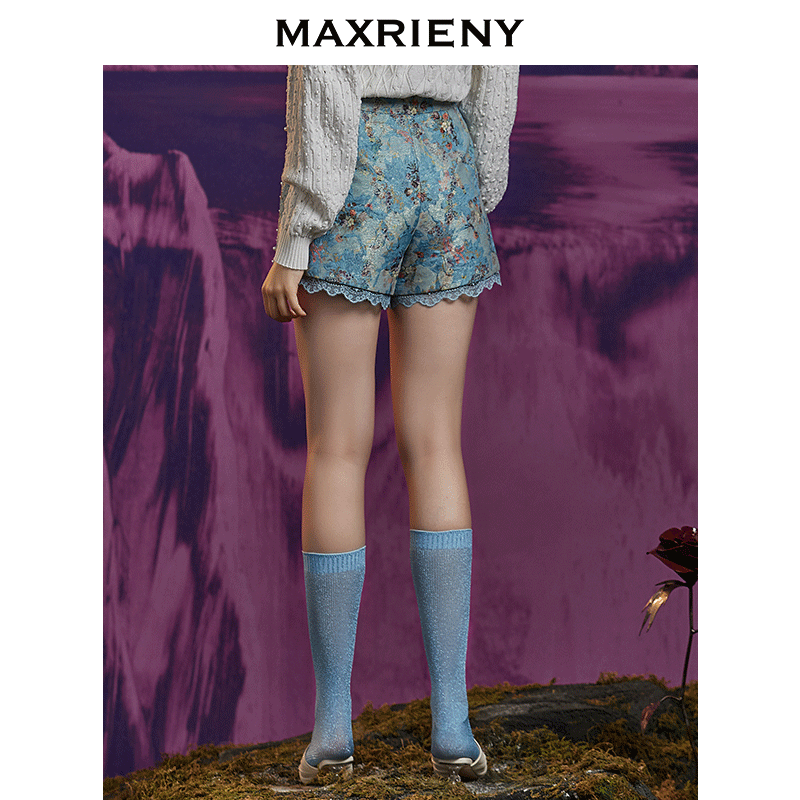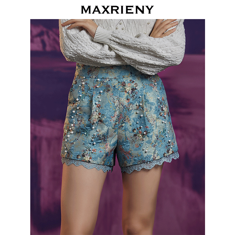 MAXRIENY winter new retro printing beaded lace shorts casual straight pants thin women