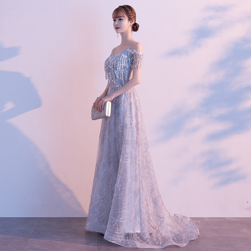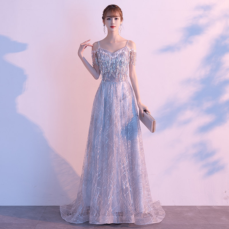 Evening dress women's banquet 2021 new elegant slim host long choir dress dress solo