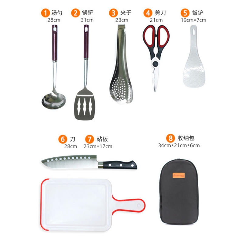 Jenson outdoor cookware 7-piece set camping kitchenware portable stainless steel tableware camping picnic supplies barbecue
