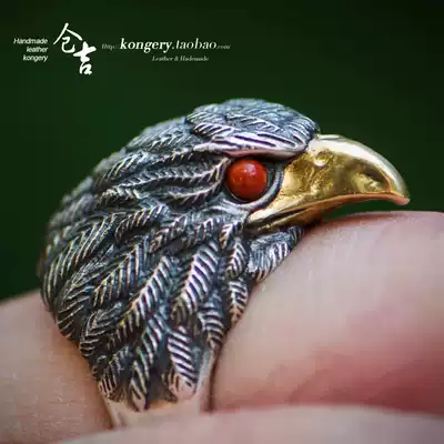 Cangji handmade S925 silver opening ring Eagle inlaid gemstone ring men and women domineering personality fashion couple ring